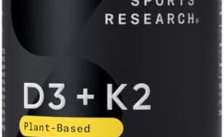 Sports Research Vitamin D3 K2 with Coconut Oil | Plant Based Vitamin K2 MK7 + Vegan D3 5000iu | Vegan Certified, Soy & Gluten Free – 60 Count Softgels